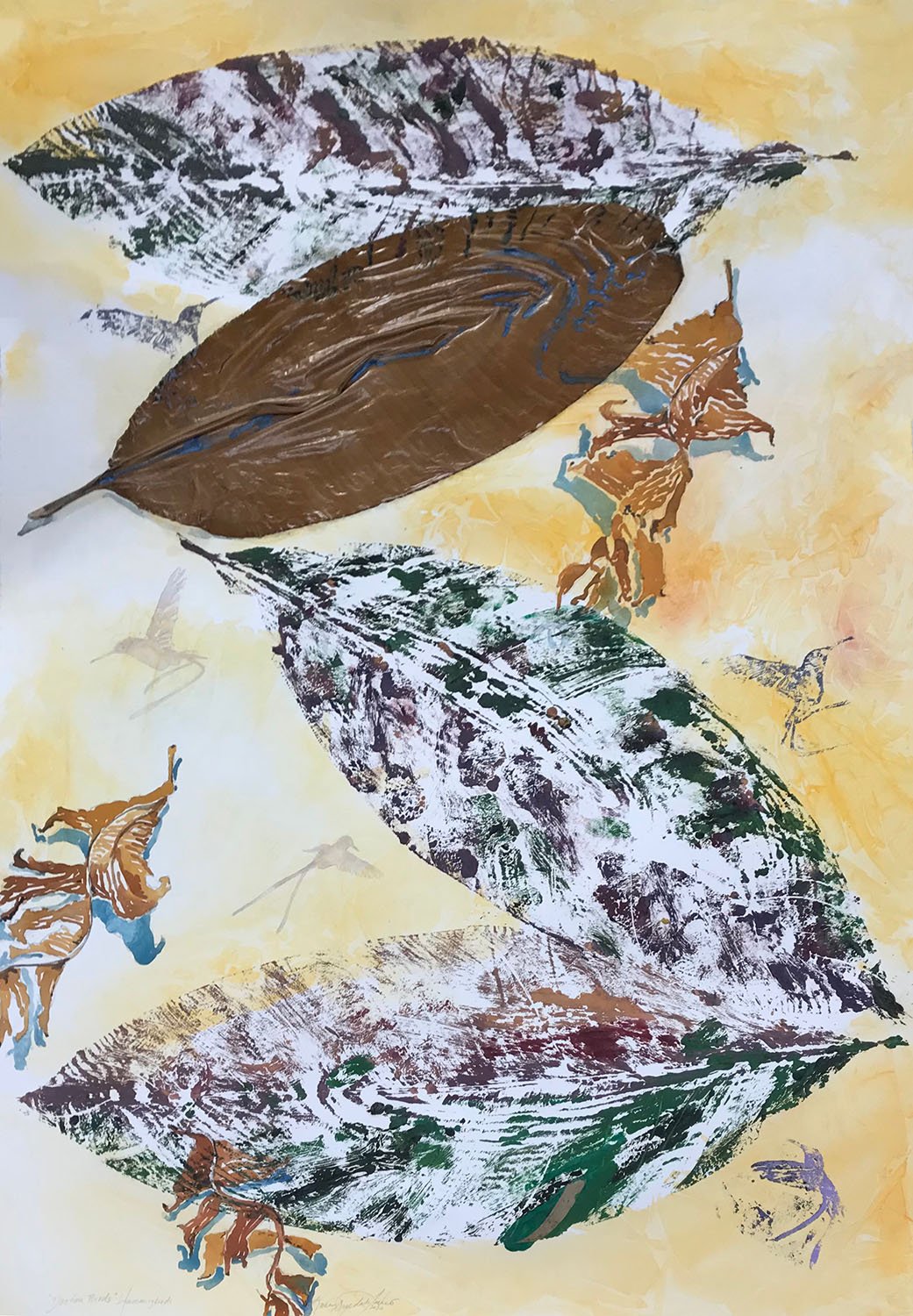 Karen Harris, a Jamaican-born artist, taps into memories of Caribbean plants and explores techniques to bring to life their intricate textures, patterns, and colors in her latest work. Her primary sources of inspiration are nature and her Jamaican roots.